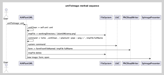 aaa := 'Write a PlantUML code for the meta function umlToImage: in class AIAPlantUML. [RESONSETYPE]Please just return the PlantUML code. No comments' q0: [ AIASourceCodeBuilder new forClass: AIAPlantUML ].