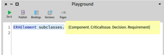 I created a Class ‘ERAElement’ and four subclasses: ‘Component’, ‘CriticalIssue’, ‘Decision’ and ‘Requirement’.