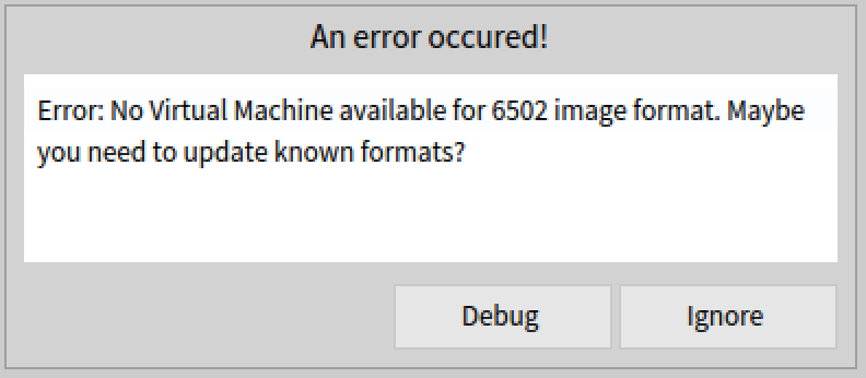 > This interpreter (vers. 6505) cannot read image file (vers. 6502).