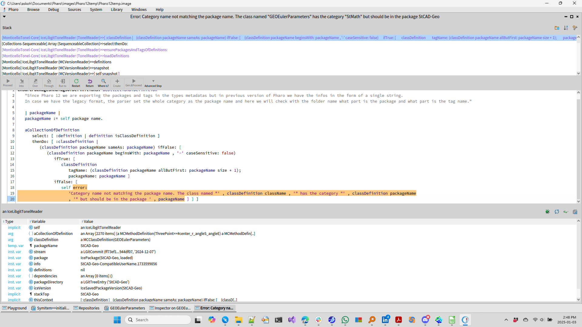 This is weird because this error happens if a class is exported with the Tonel format in a package (aka a Folder) but has a different package in the metadata of the class.