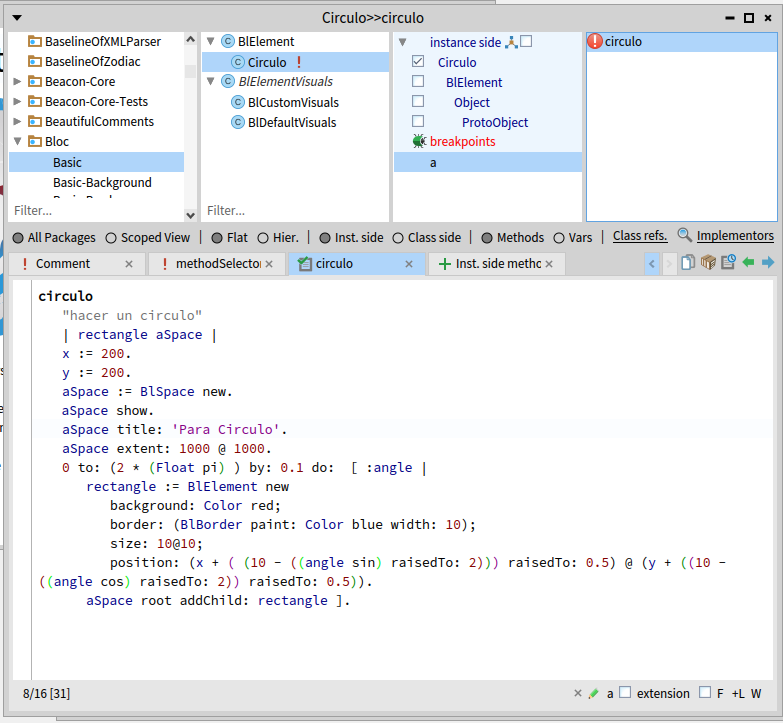 I appreaciate a lot that you redirect me to Bloc list, bc I was afraid of going there with such a newbe issue, which by the way I still didn't get right (putting one little square along the circumference). Just a toy approach on my part in order to learn both Pharo and Bloc. But maybe I'm hittiong against some rough part of Bloc, which has to do with 'refreshes' . I still coudn't make the squares render. I'll report back on this later in the week, maybe also in the Pharo list.