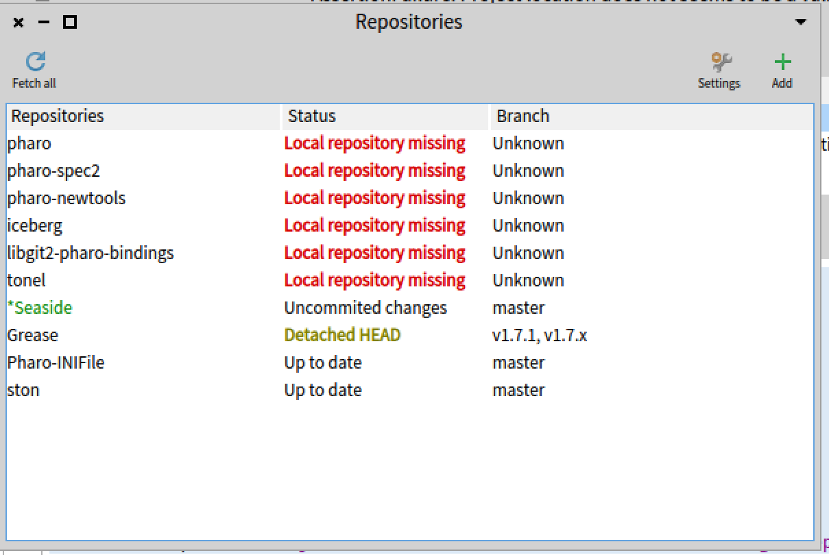 from the Iceberg window showing red/detached repos that are only important