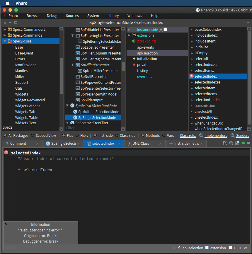 >> SpSingleSelectionMode - the next breakpoint (in Pharo repo) did fire and