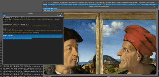 The API seems cool though, I got a nice painting back retrieving one of the embedded URLs (artObject->webImage->url) using