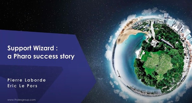 Support Wizard is an application developped by Pierre Laborde and Eric Le Pors, Global Design and Innovation Leaders at Thales. It is using the latest technological innovations from Pharo to create native and high-performance desktop human-machine interfaces (Bloc graphics engine, Toplo libraries and OS tools). The application is structured with the open-source component architecture framework Molecule. The simplicity and speed of production offered by Pharo and the power of its language allows Thales to focus our efforts on ergonomics and graphic design of the application to offer the best possible user experience.