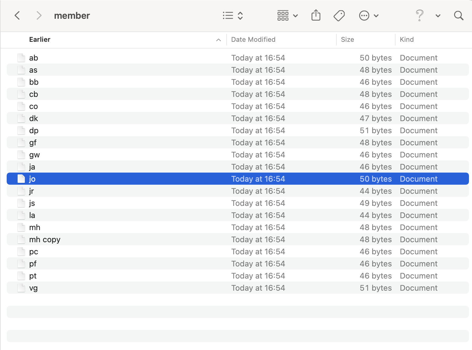 Not sure what you mean by ls. Here is the directory. The file called jo is not appearing in the list.
